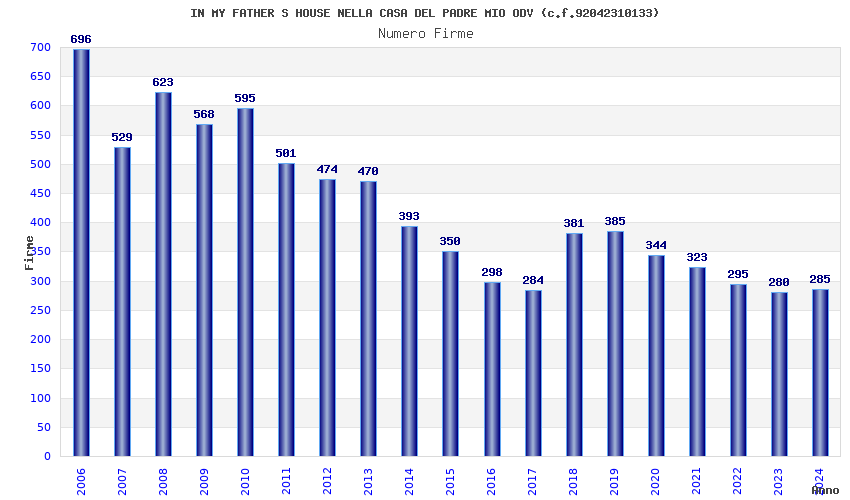 | Anno | Firme | Importi | Media | Naz. | Reg. | Prov. | Comu. |