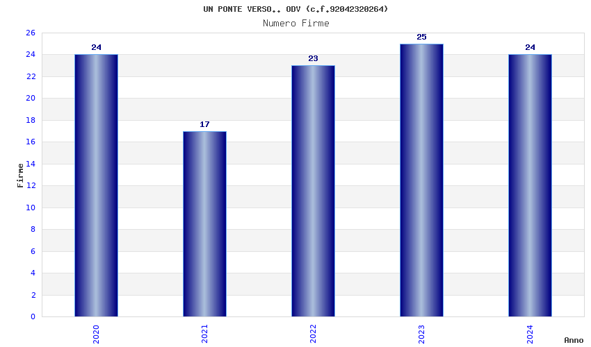 | Anno | Firme | Importi | Media | Naz. | Reg. | Prov. | Comu. |