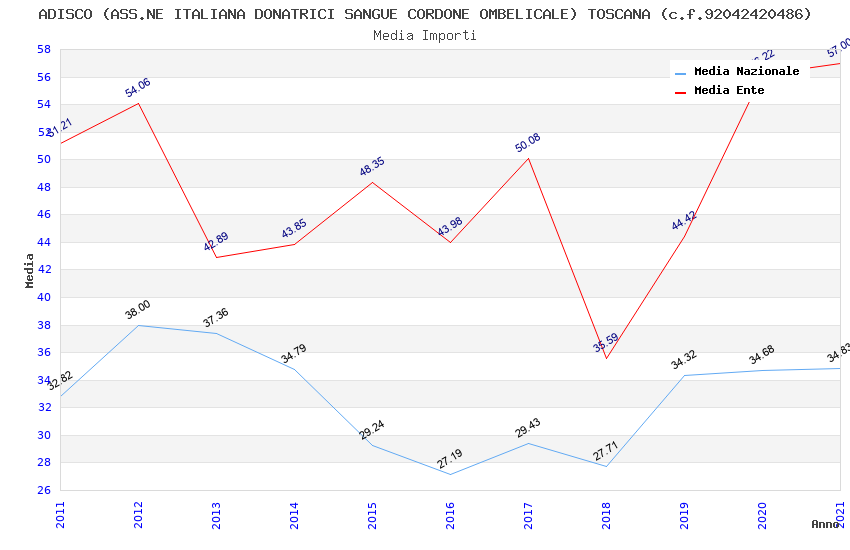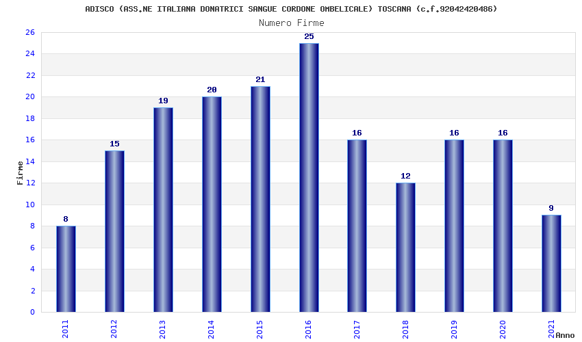 | Anno | Firme | Importi | Media | Naz. | Reg. | Prov. | Comu. |
