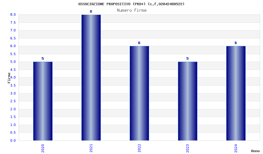 | Anno | Firme | Importi | Media | Naz. | Reg. | Prov. | Comu. |