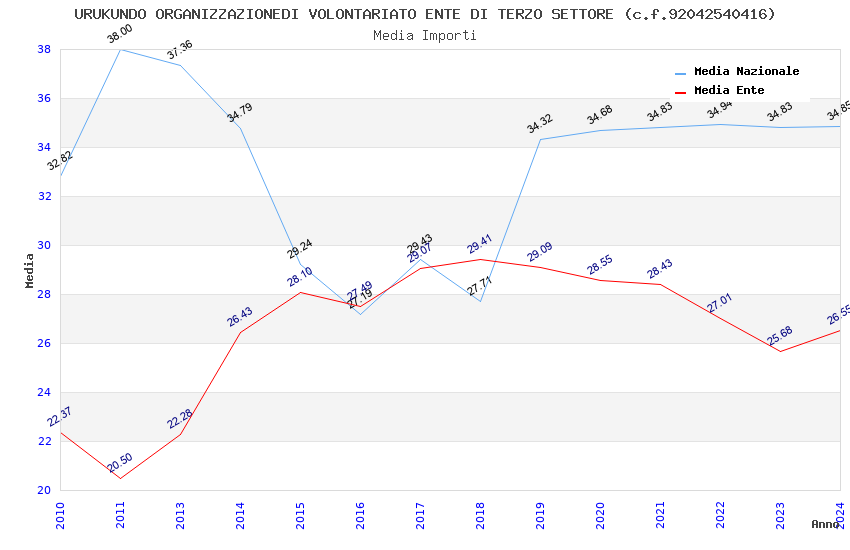 | Anno | Firme | Importi | Media | Naz. | Reg. | Prov. | Comu. |