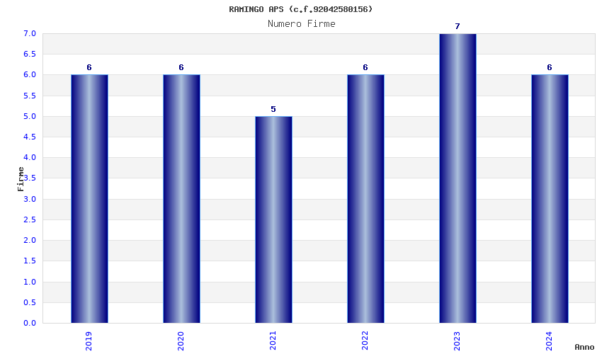 | Anno | Firme | Importi | Media | Naz. | Reg. | Prov. | Comu. |