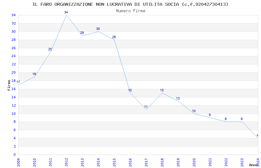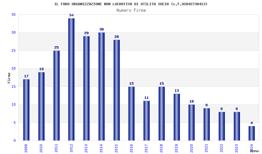 | Anno | Firme | Importi | Media | Naz. | Reg. | Prov. | Comu. |