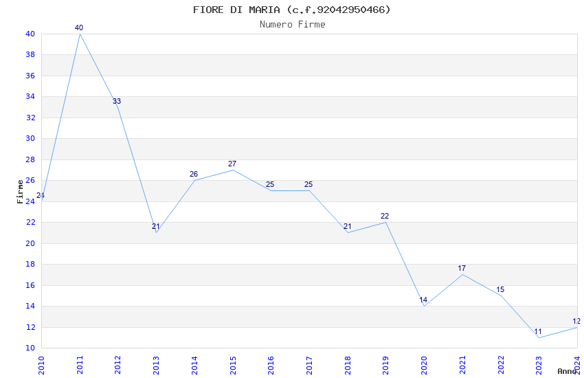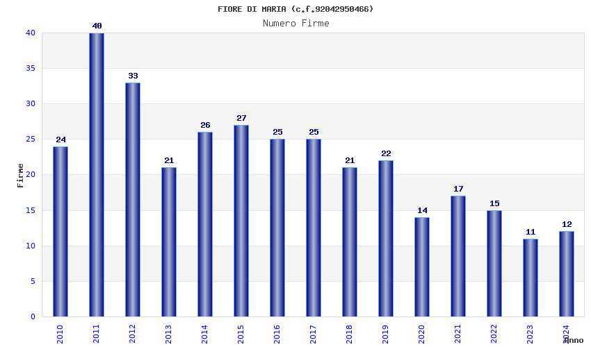 | Anno | Firme | Importi | Media | Naz. | Reg. | Prov. | Comu. |