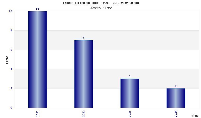 | Anno | Firme | Importi | Media | Naz. | Reg. | Prov. | Comu. |