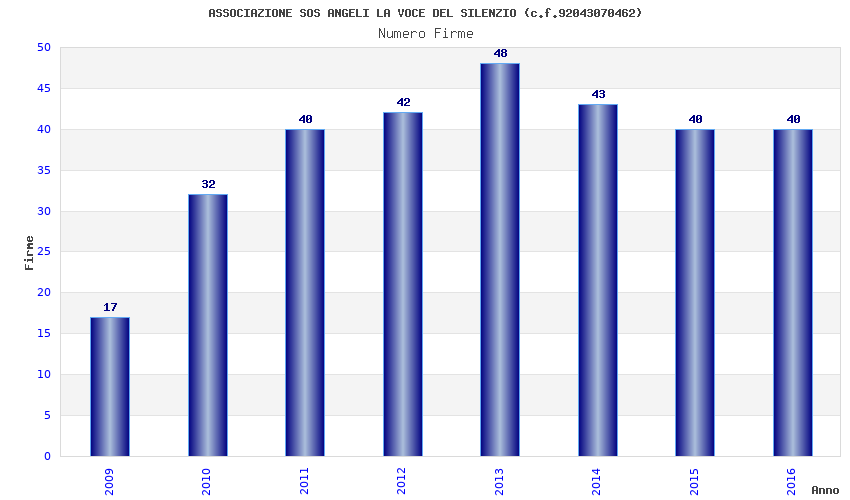 | Anno | Firme | Importi | Media | Naz. | Reg. | Prov. | Comu. |