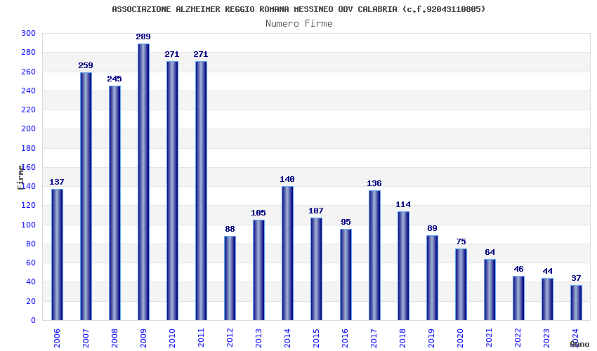 | Anno | Firme | Importi | Media | Naz. | Reg. | Prov. | Comu. |