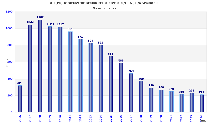| 2024 | 211 | 8.258,81 | 39,14 | 6.167 | 1.453 | 45 | 2 |