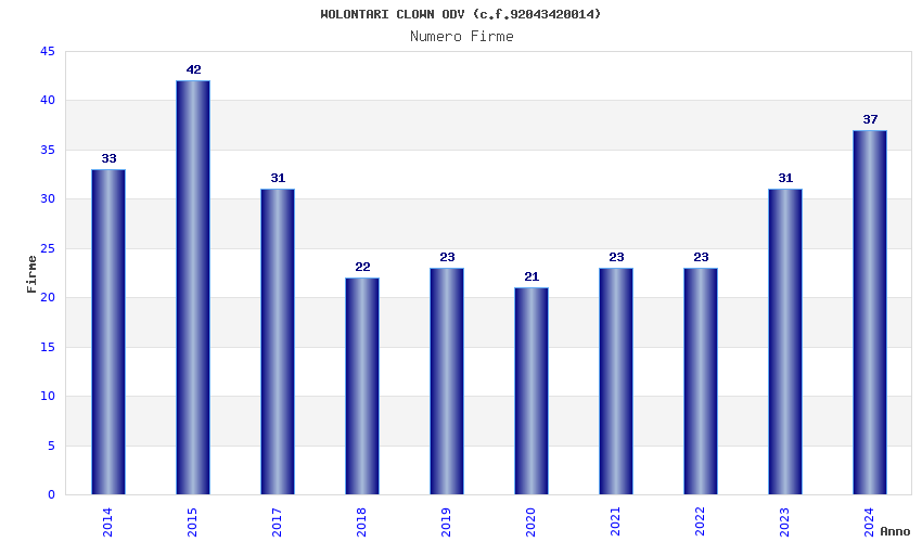 | Anno | Firme | Importi | Media | Naz. | Reg. | Prov. | Comu. |