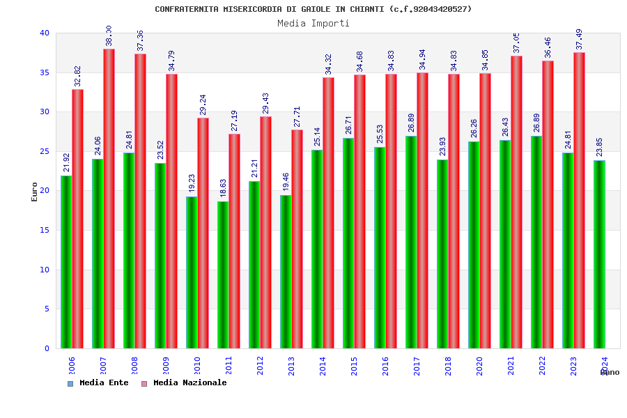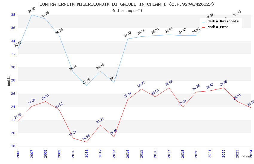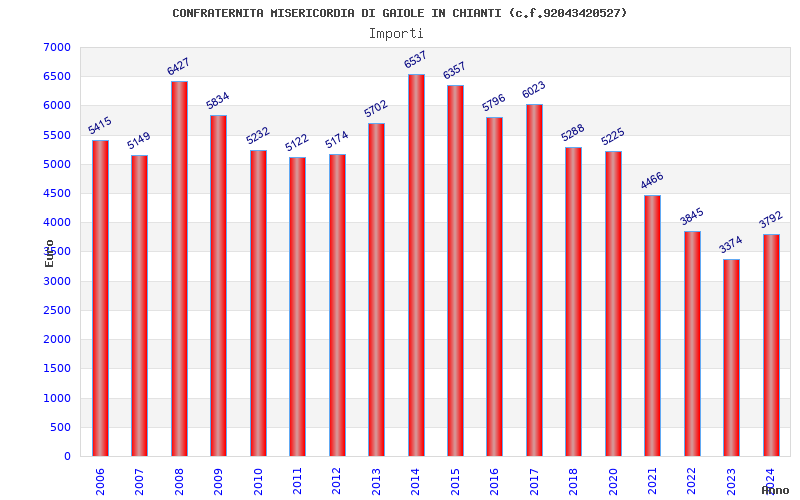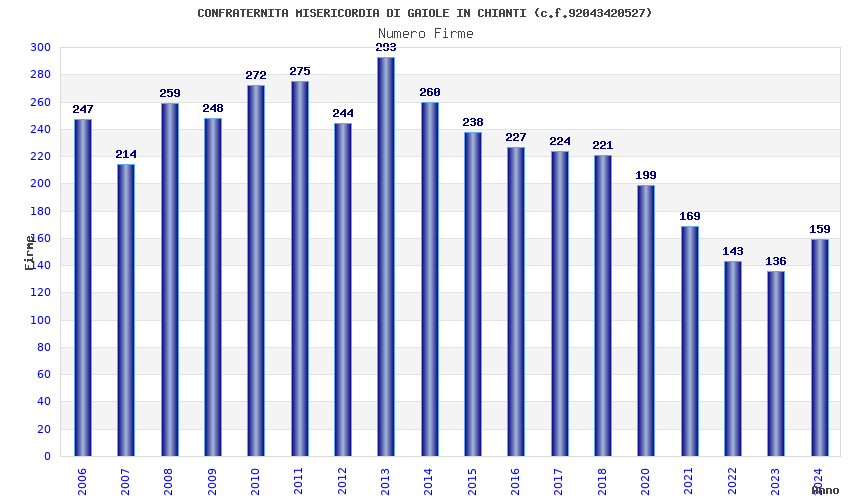 | Anno | Firme | Importi | Media | Naz. | Reg. | Prov. | Comu. |
