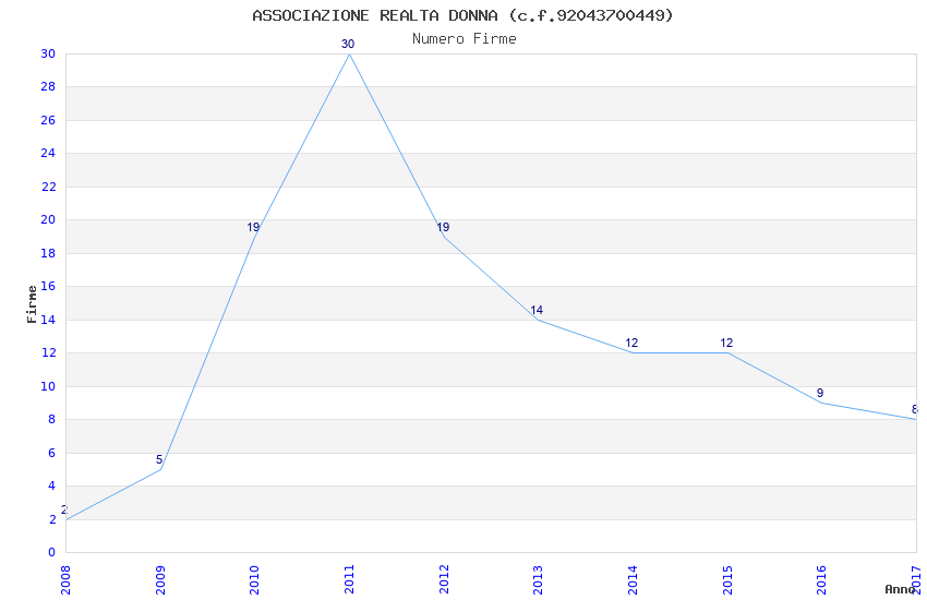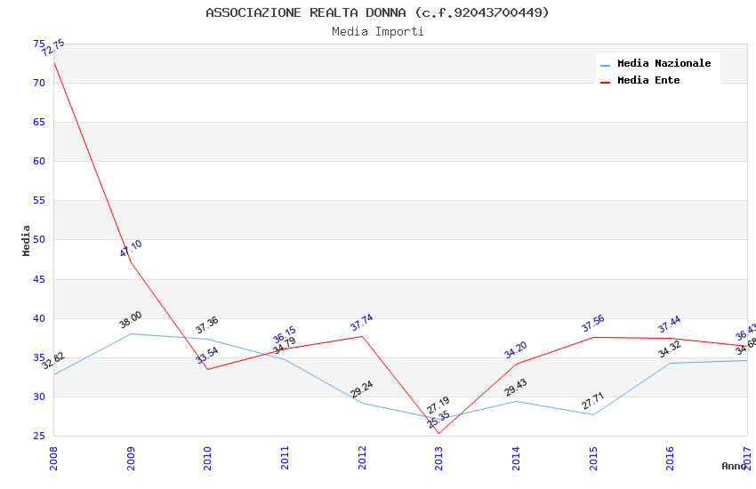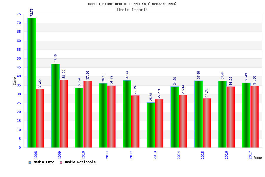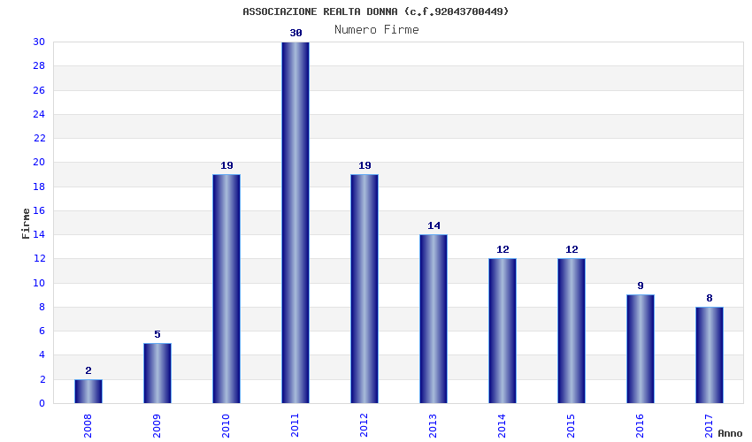 | Anno | Firme | Importi | Media | Naz. | Reg. | Prov. | Comu. |