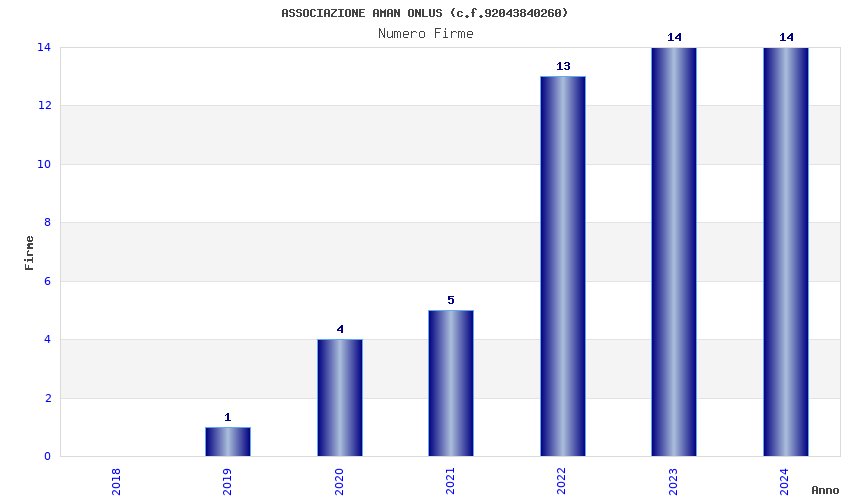| Anno | Firme | Importi | Media | Naz. | Reg. | Prov. | Comu. |