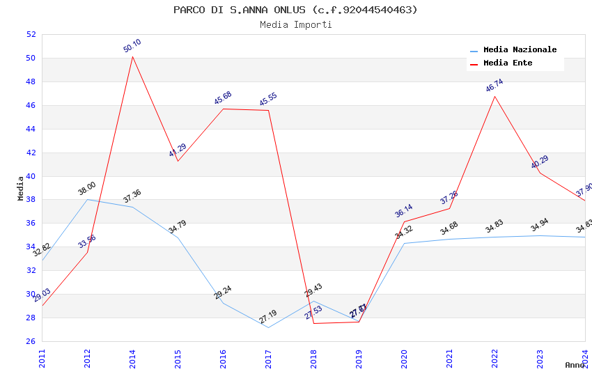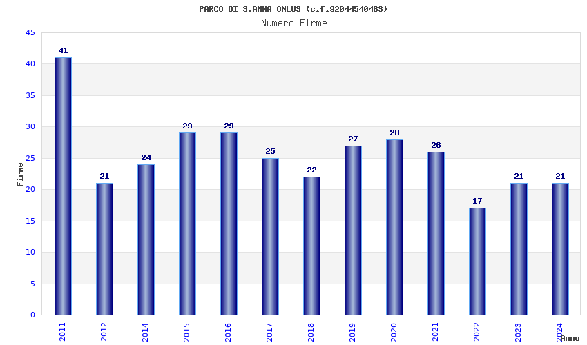 | Anno | Firme | Importi | Media | Naz. | Reg. | Prov. | Comu. |