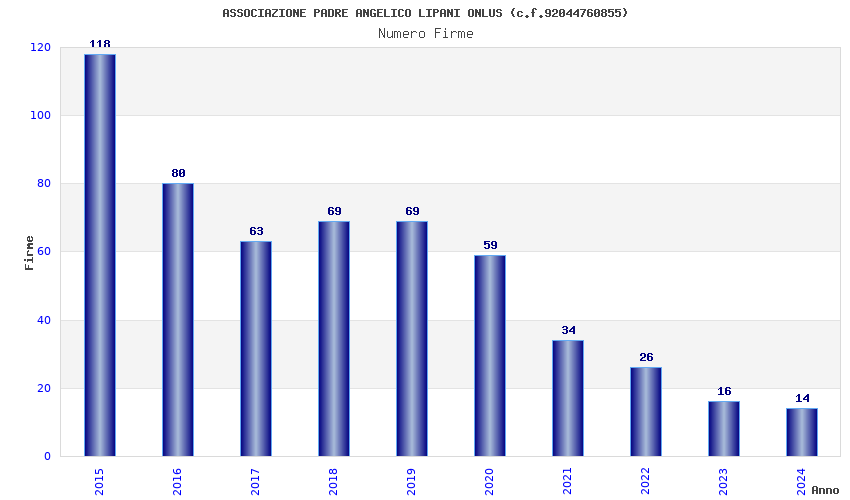 | Anno | Firme | Importi | Media | Naz. | Reg. | Prov. | Comu. |