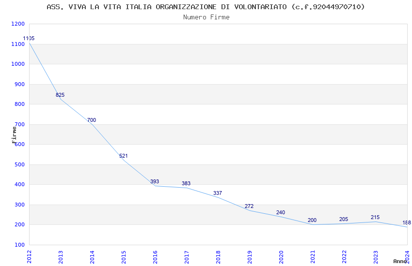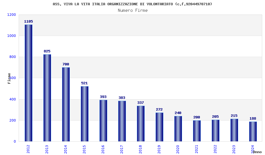 | Anno | Firme | Importi | Media | Naz. | Reg. | Prov. | Comu. |