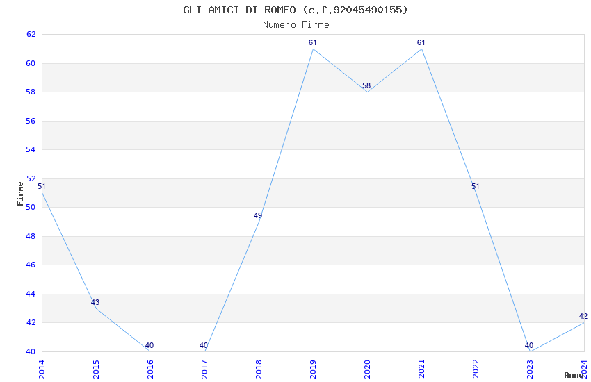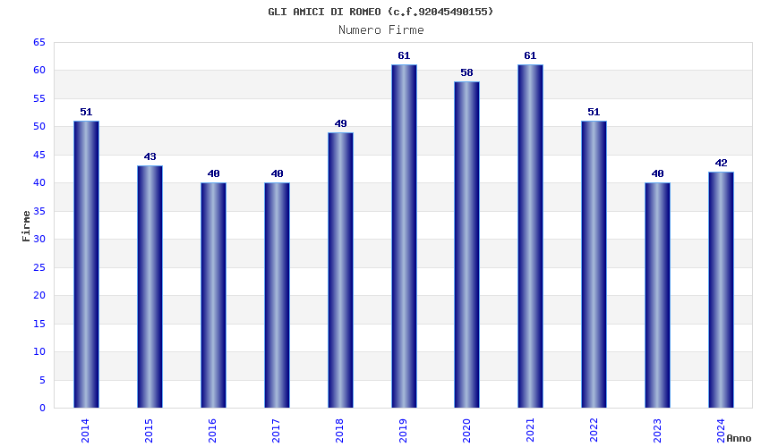 | Anno | Firme | Importi | Media | Naz. | Reg. | Prov. | Comu. |