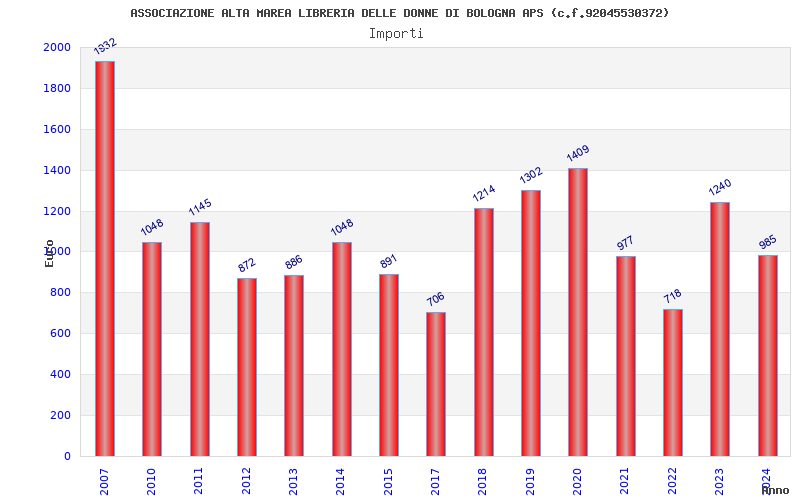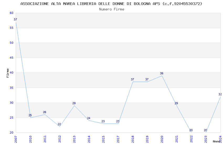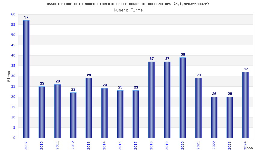 | Anno | Firme | Importi | Media | Naz. | Reg. | Prov. | Comu. |