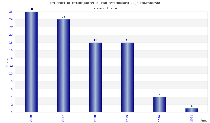 | Anno | Firme | Importi | Media | Naz. | Reg. | Prov. | Comu. |