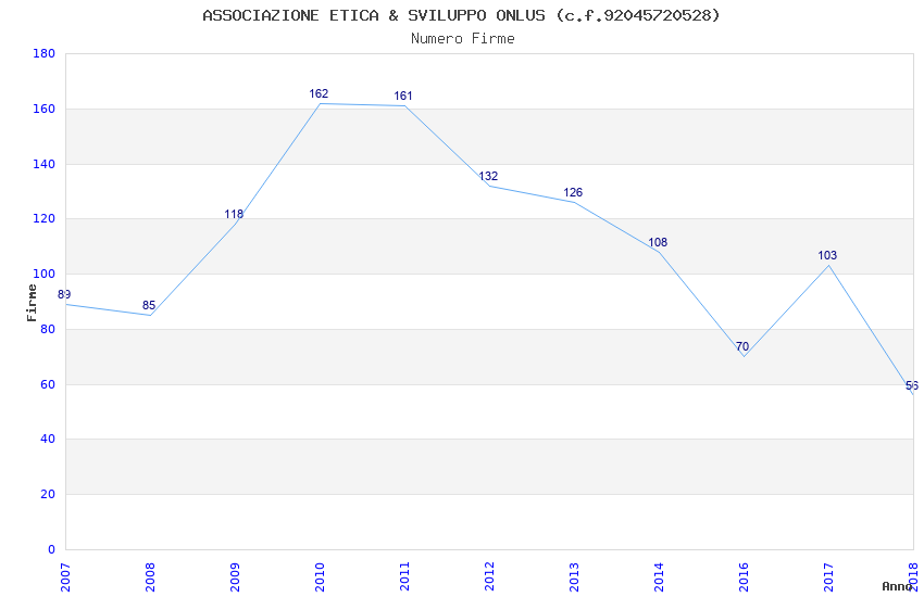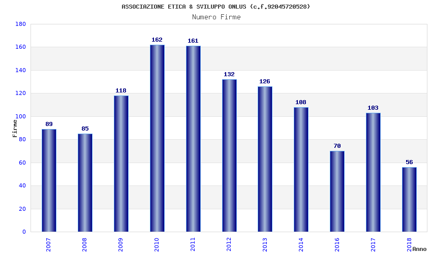 | Anno | Firme | Importi | Media | Naz. | Reg. | Prov. | Comu. |
