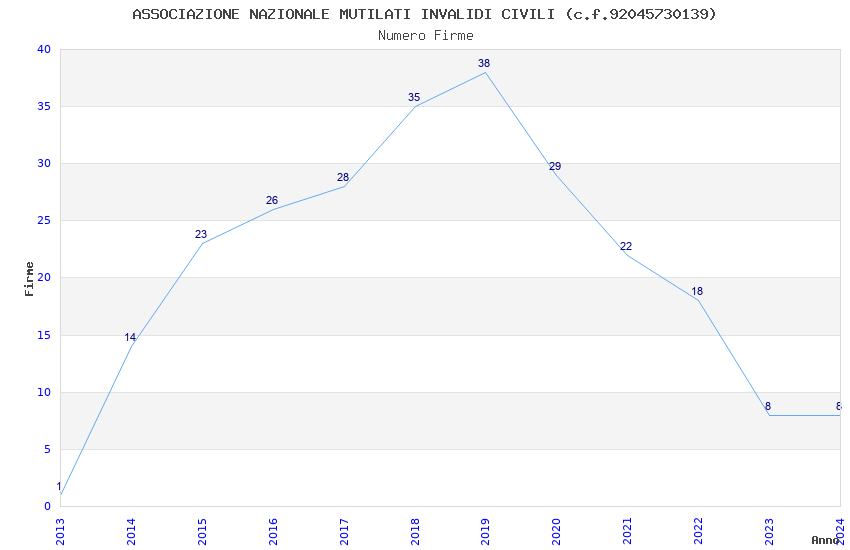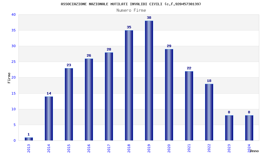 | Anno | Firme | Importi | Media | Naz. | Reg. | Prov. | Comu. |