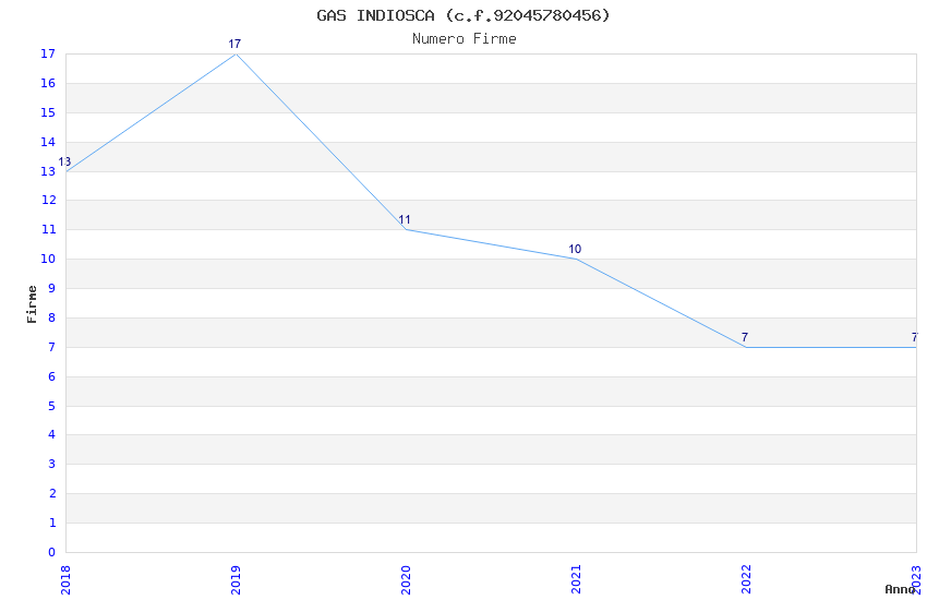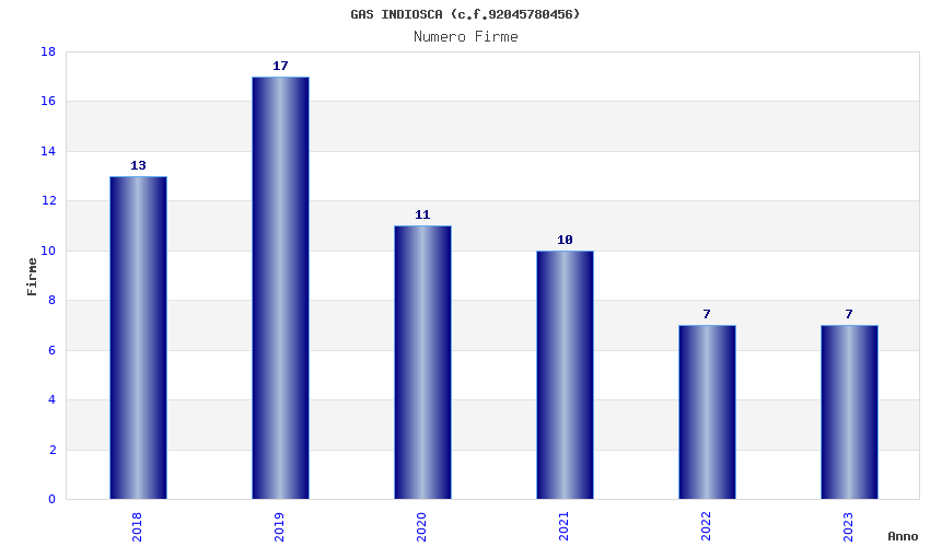 | Anno | Firme | Importi | Media | Naz. | Reg. | Prov. | Comu. |