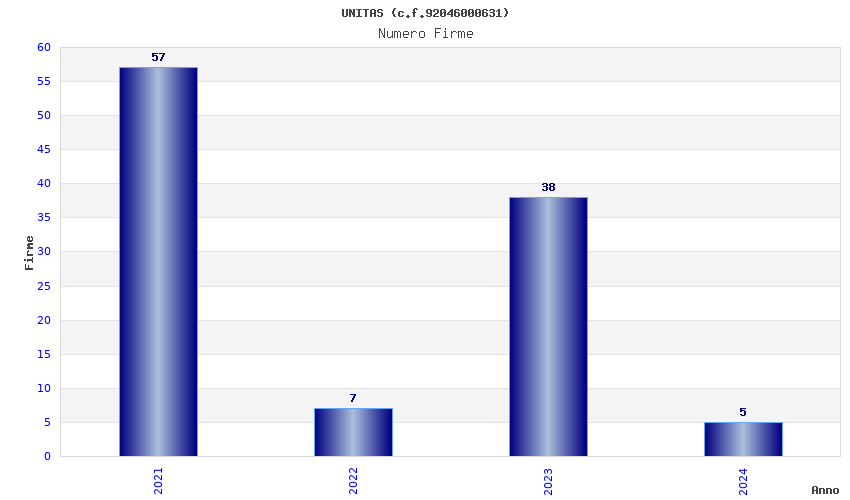 | Anno | Firme | Importi | Media | Naz. | Reg. | Prov. | Comu. |