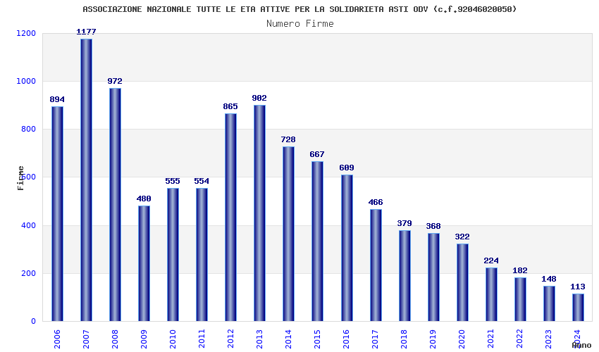 | Anno | Firme | Importi | Media | Naz. | Reg. | Prov. | Comu. |