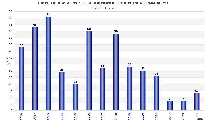 | 2013 | 71 | 1.498,28 | 21,10 | 22.004 | 1.131 | 60 | 1 |