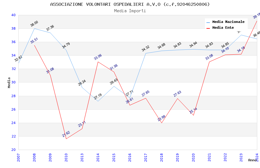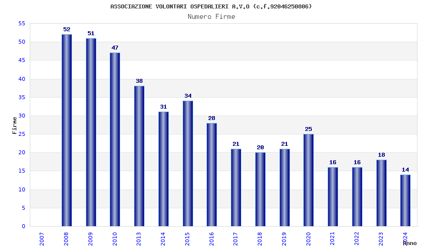 | Anno | Firme | Importi | Media | Naz. | Reg. | Prov. | Comu. |