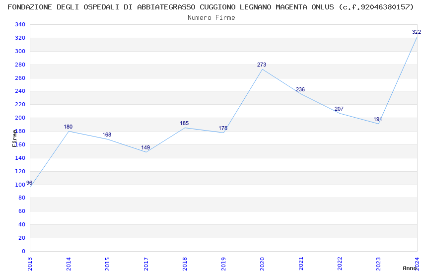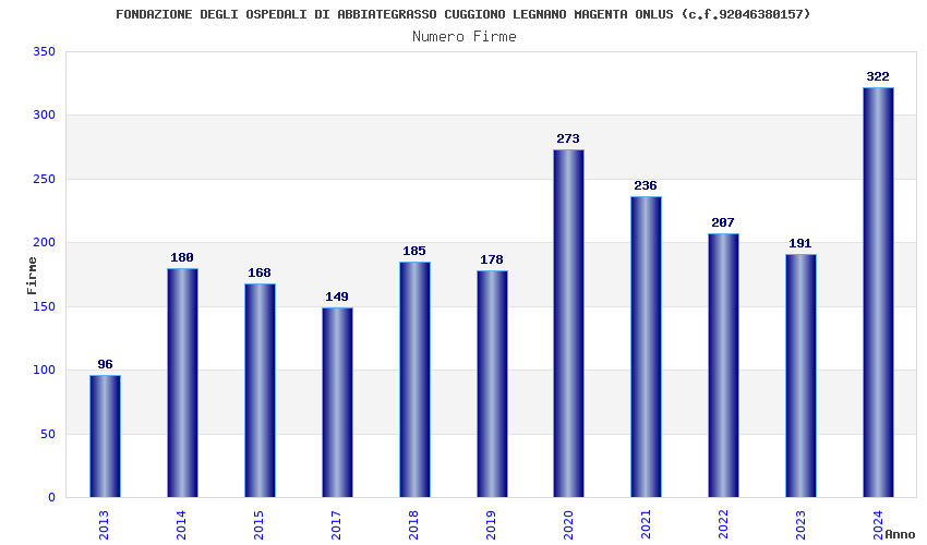 | Anno | Firme | Importi | Media | Naz. | Reg. | Prov. | Comu. |