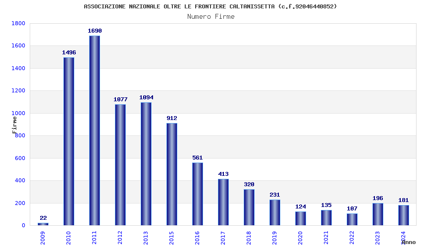 | Anno | Firme | Importi | Media | Naz. | Reg. | Prov. | Comu. |
