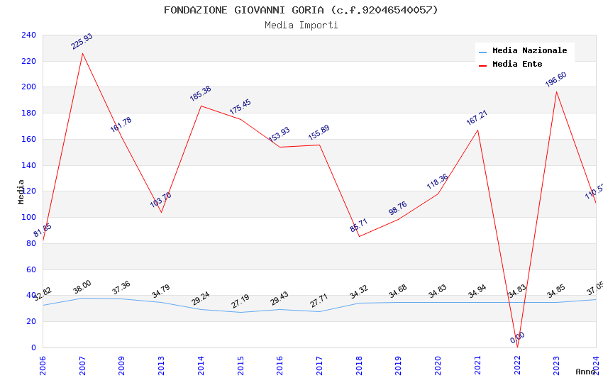 | Anno | Firme | Importi | Media | Naz. | Reg. | Prov. | Comu. |