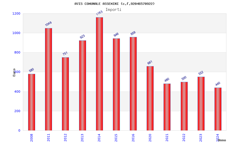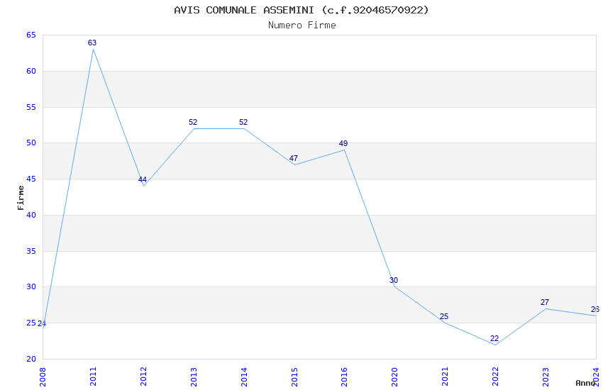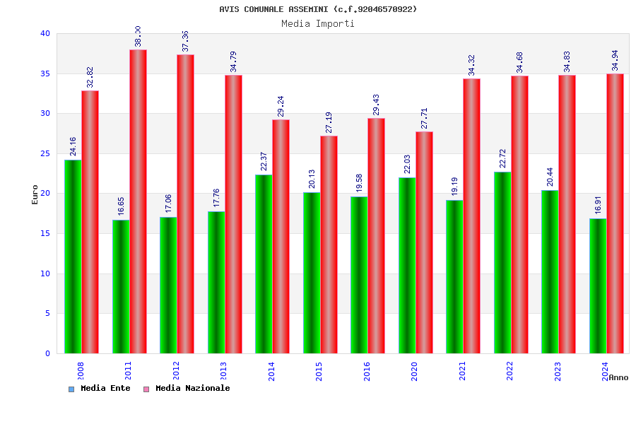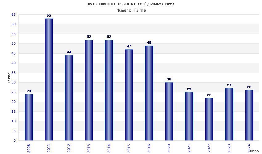 | Anno | Firme | Importi | Media | Naz. | Reg. | Prov. | Comu. |