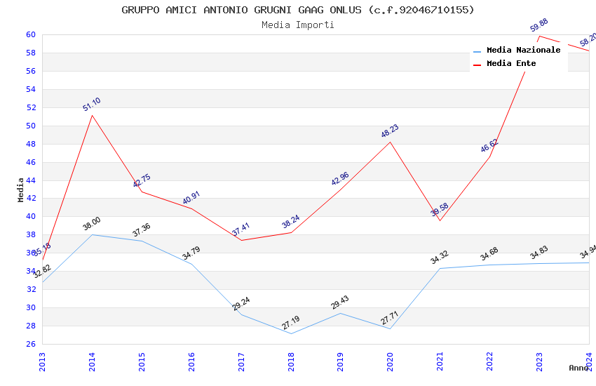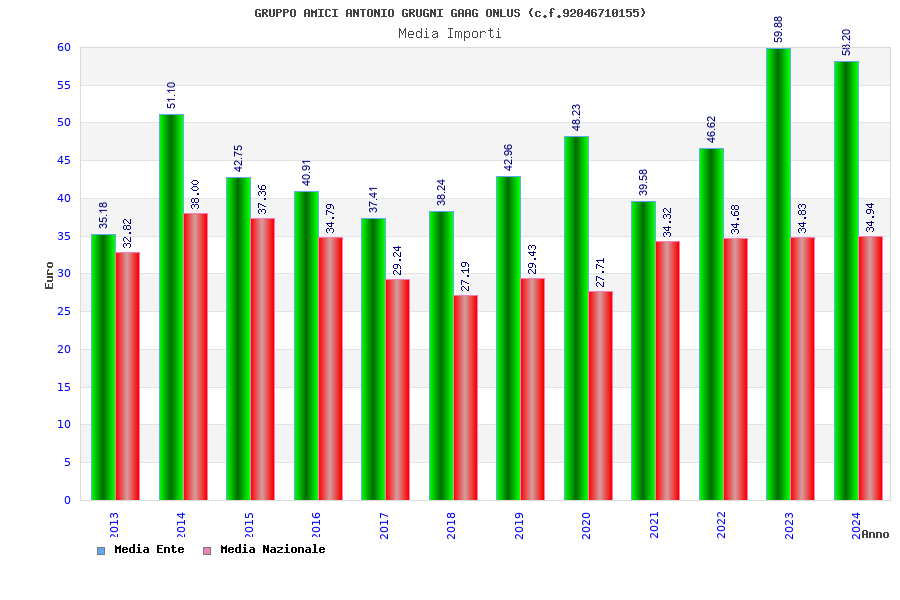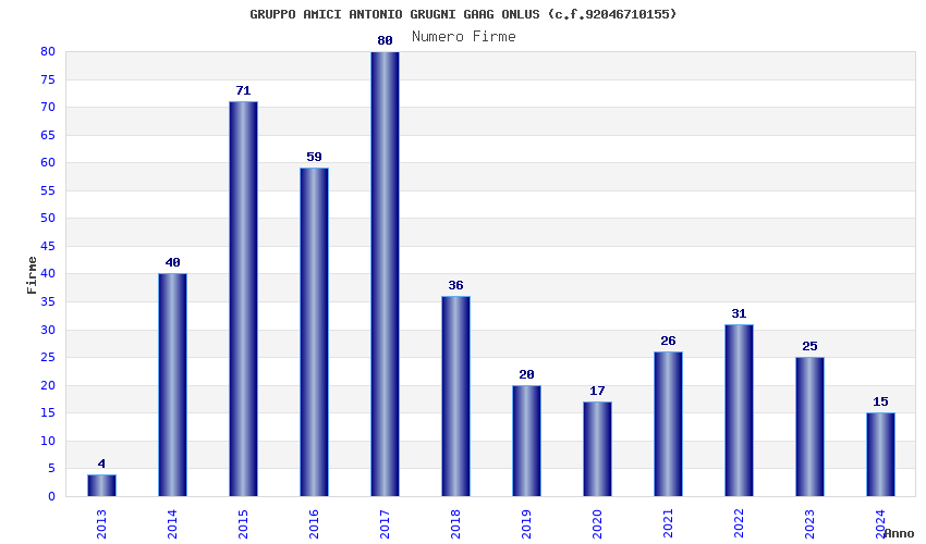 | Anno | Firme | Importi | Media | Naz. | Reg. | Prov. | Comu. |