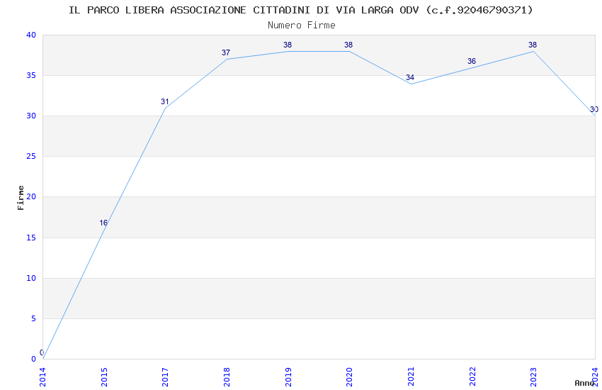 | 2019 | 38 | 1.446,88 | 38,08 | 29.404 | 2.594 | 640 | 325 |