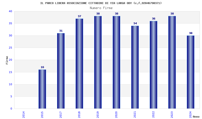 | Anno | Firme | Importi | Media | Naz. | Reg. | Prov. | Comu. |