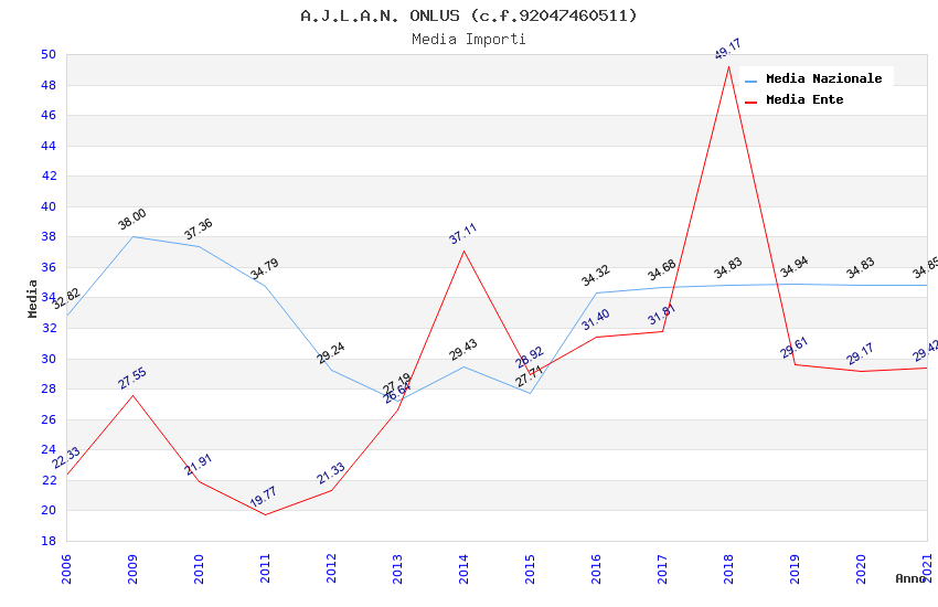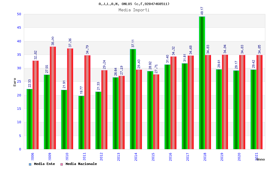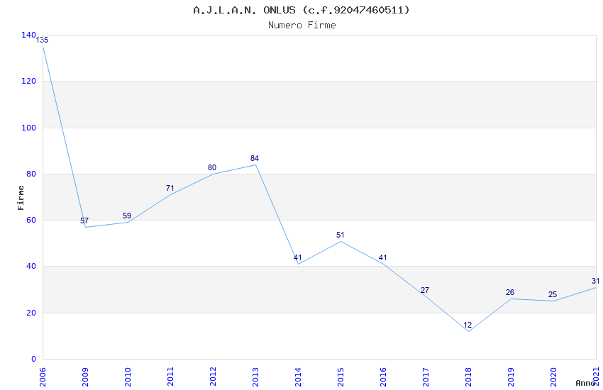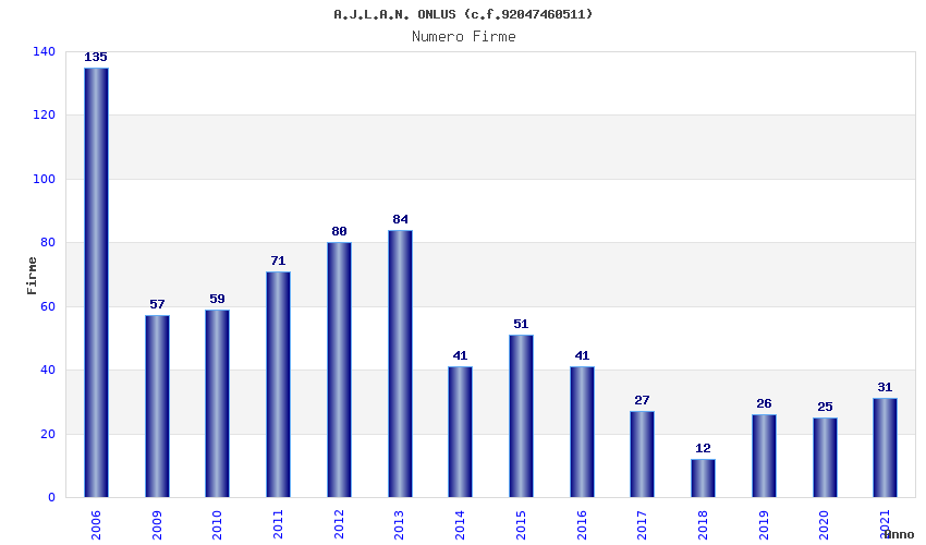 | Anno | Firme | Importi | Media | Naz. | Reg. | Prov. | Comu. |