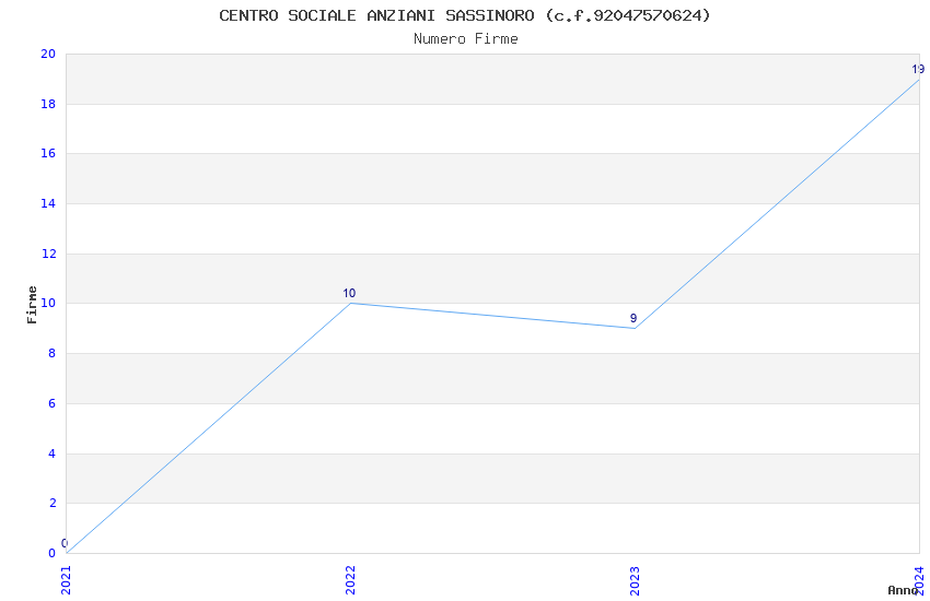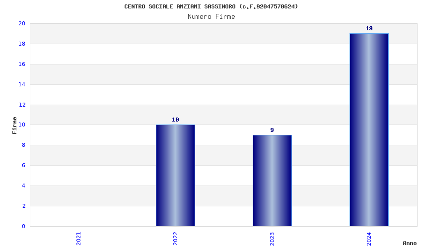 | Anno | Firme | Importi | Media | Naz. | Reg. | Prov. | Comu. |