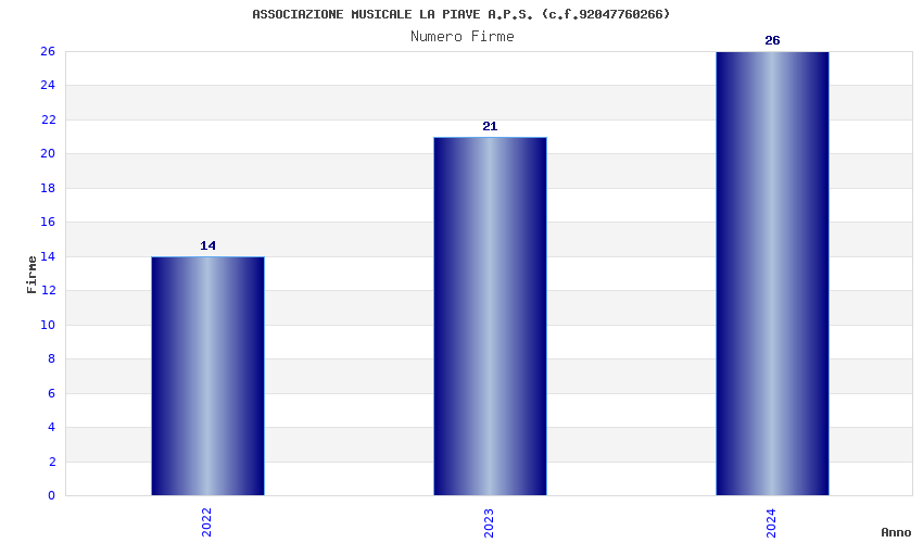 | Anno | Firme | Importi | Media | Naz. | Reg. | Prov. | Comu. |