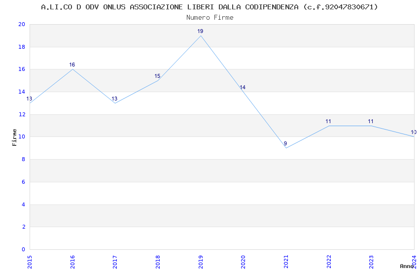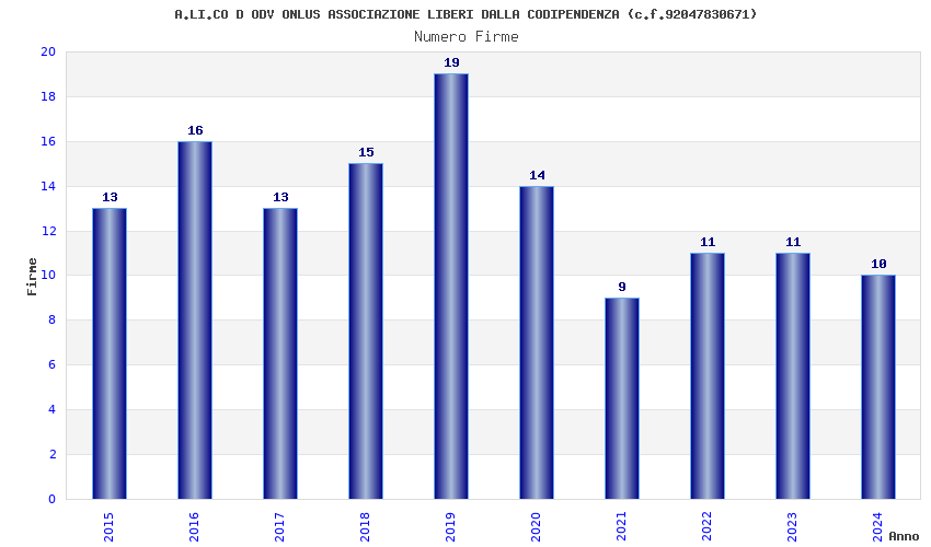 | Anno | Firme | Importi | Media | Naz. | Reg. | Prov. | Comu. |