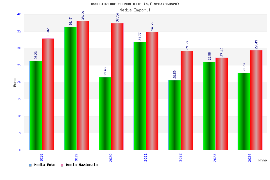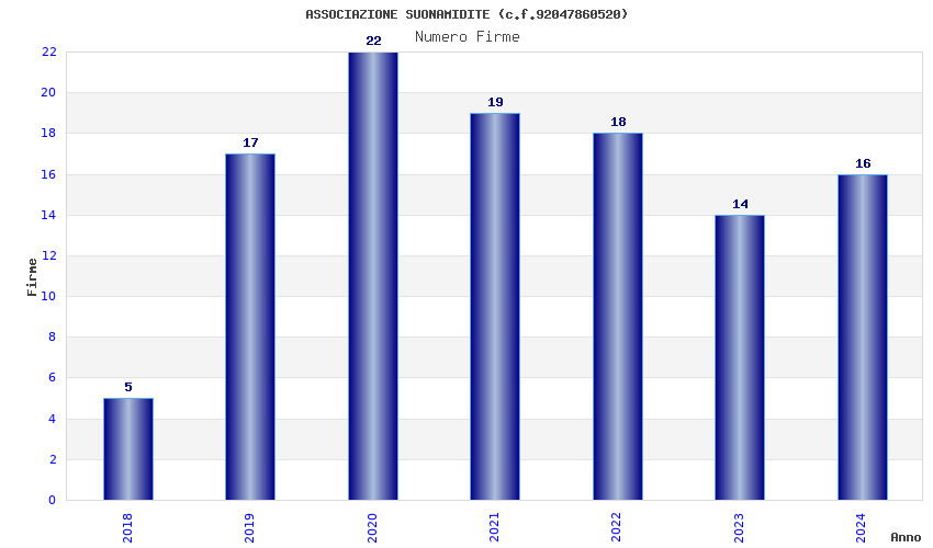 | Anno | Firme | Importi | Media | Naz. | Reg. | Prov. | Comu. |