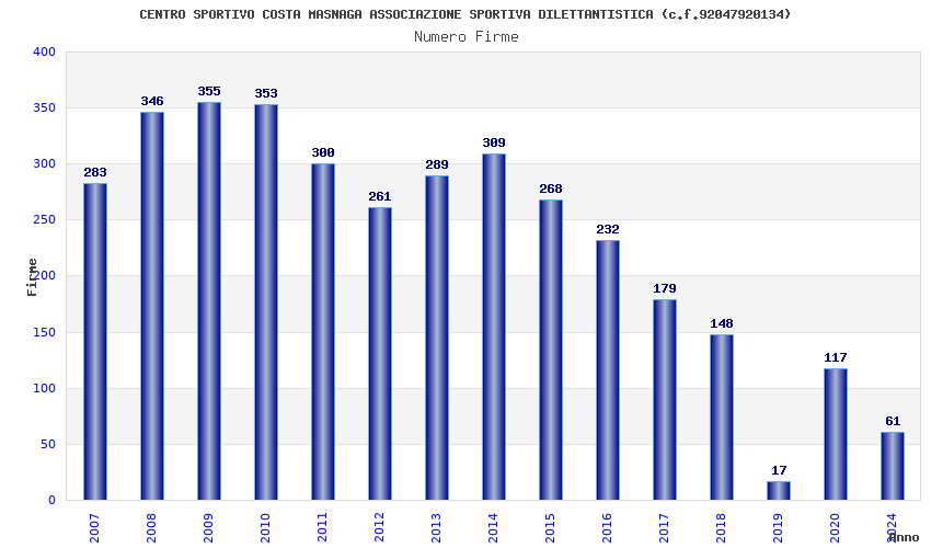 | 2019 | 17 | 794,10 | 46,71 | 39.202 | 8.291 | 375 | 5 |