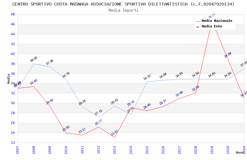 | Anno | Firme | Importi | Media | Naz. | Reg. | Prov. | Comu. |