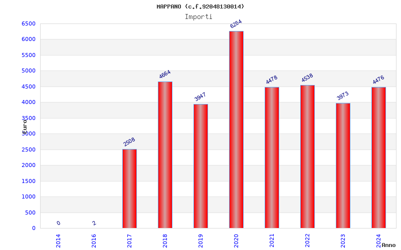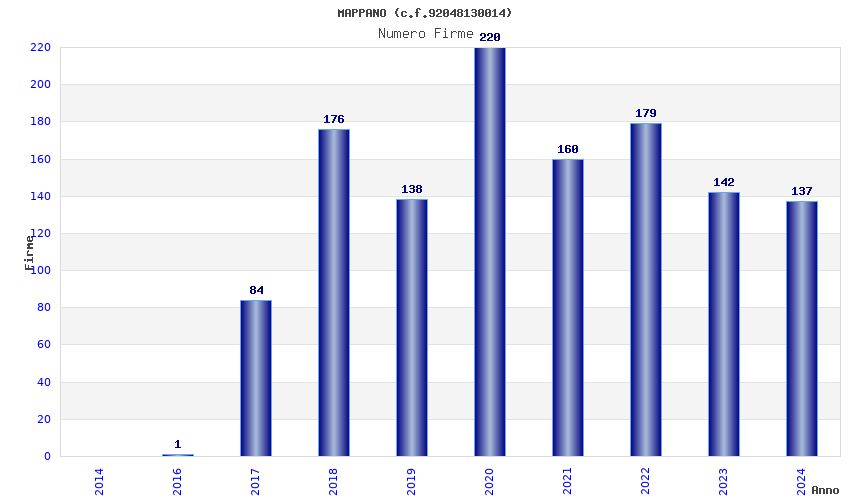 | Anno | Firme | Importi | Media | Naz. | Reg. | Prov. | Comu. |