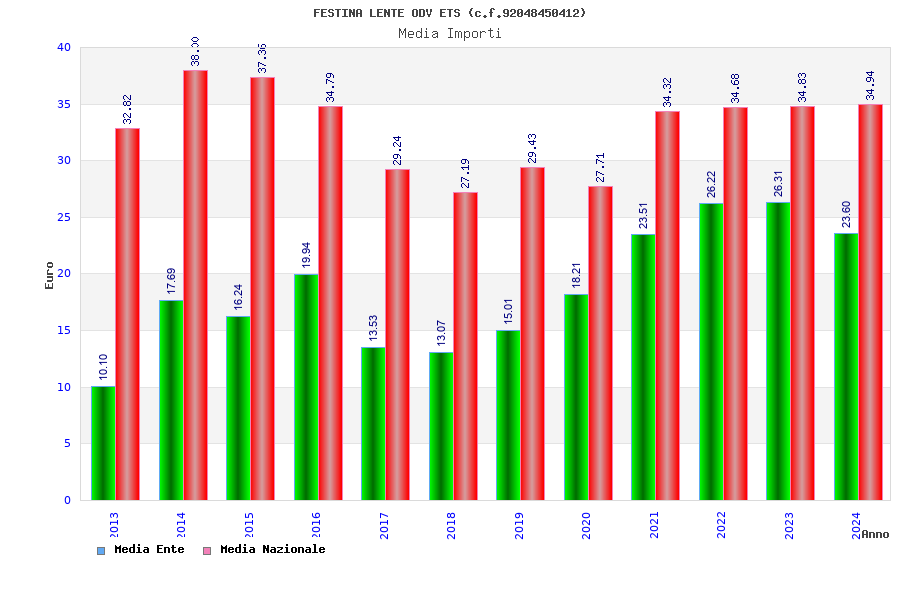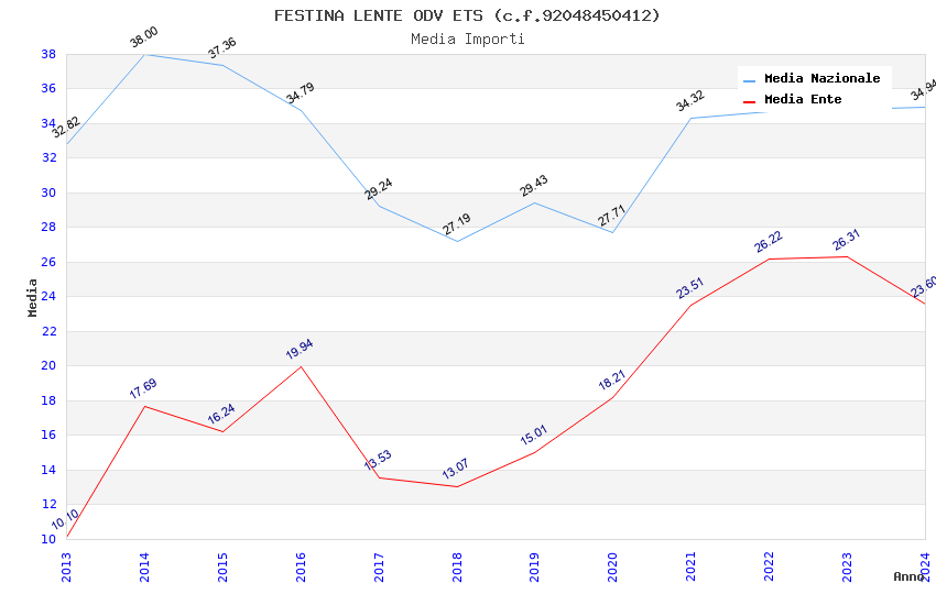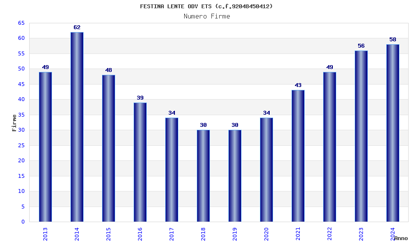 | Anno | Firme | Importi | Media | Naz. | Reg. | Prov. | Comu. |