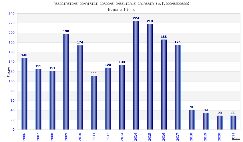 | Anno | Firme | Importi | Media | Naz. | Reg. | Prov. | Comu. |