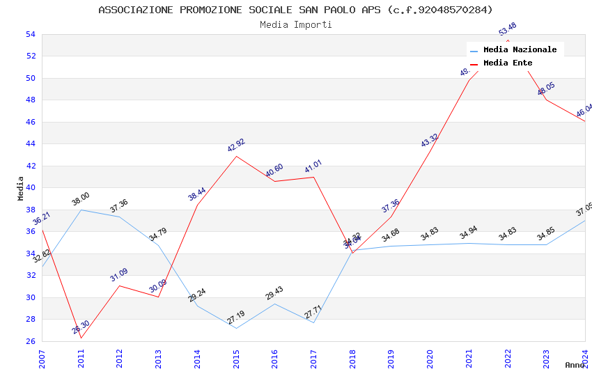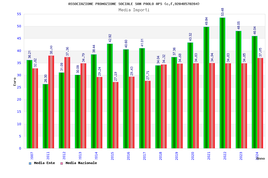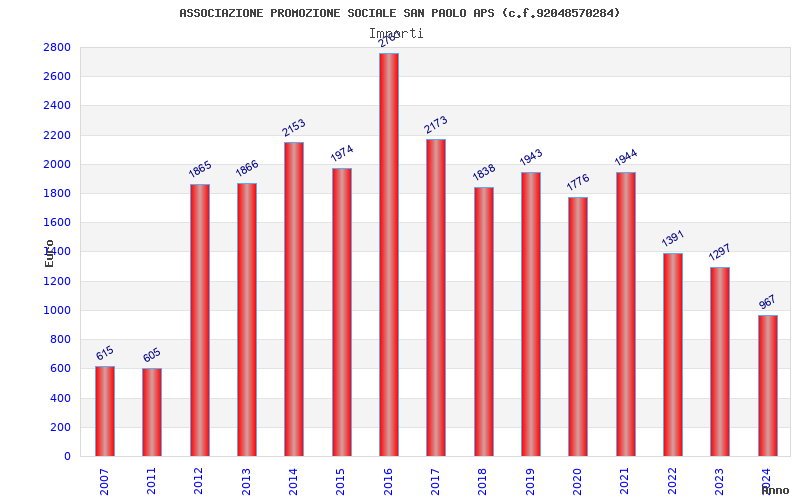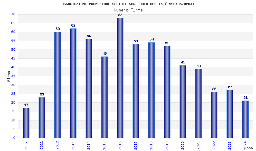| Anno | Firme | Importi | Media | Naz. | Reg. | Prov. | Comu. |