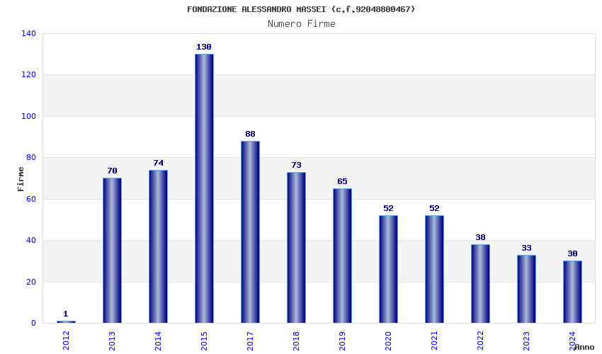 | Anno | Firme | Importi | Media | Naz. | Reg. | Prov. | Comu. |