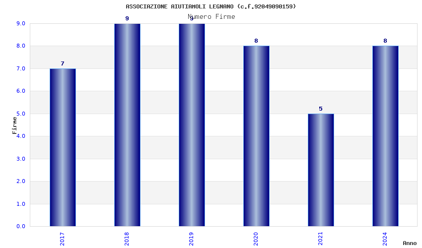 | Anno | Firme | Importi | Media | Naz. | Reg. | Prov. | Comu. |