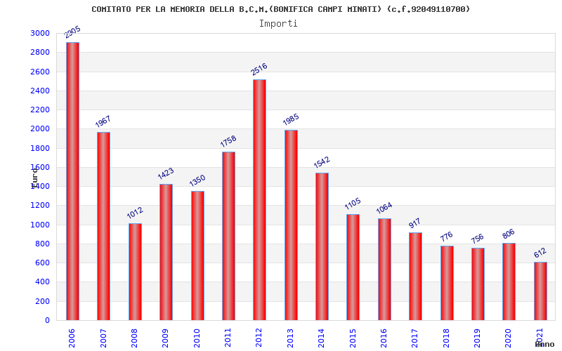 | Anno | Firme | Importi | Media | Naz. | Reg. | Prov. | Comu. |